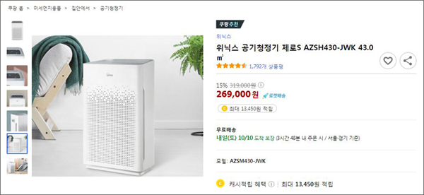 ▼ 위닉스 공기청정기 제로 S AZSH430-JWK 상품 구매하기