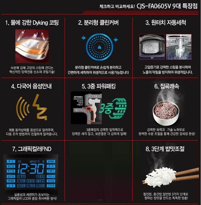 ▼ 쿠첸 6인용 압력밥솥 CJS-FA0605V 상품 구매하기