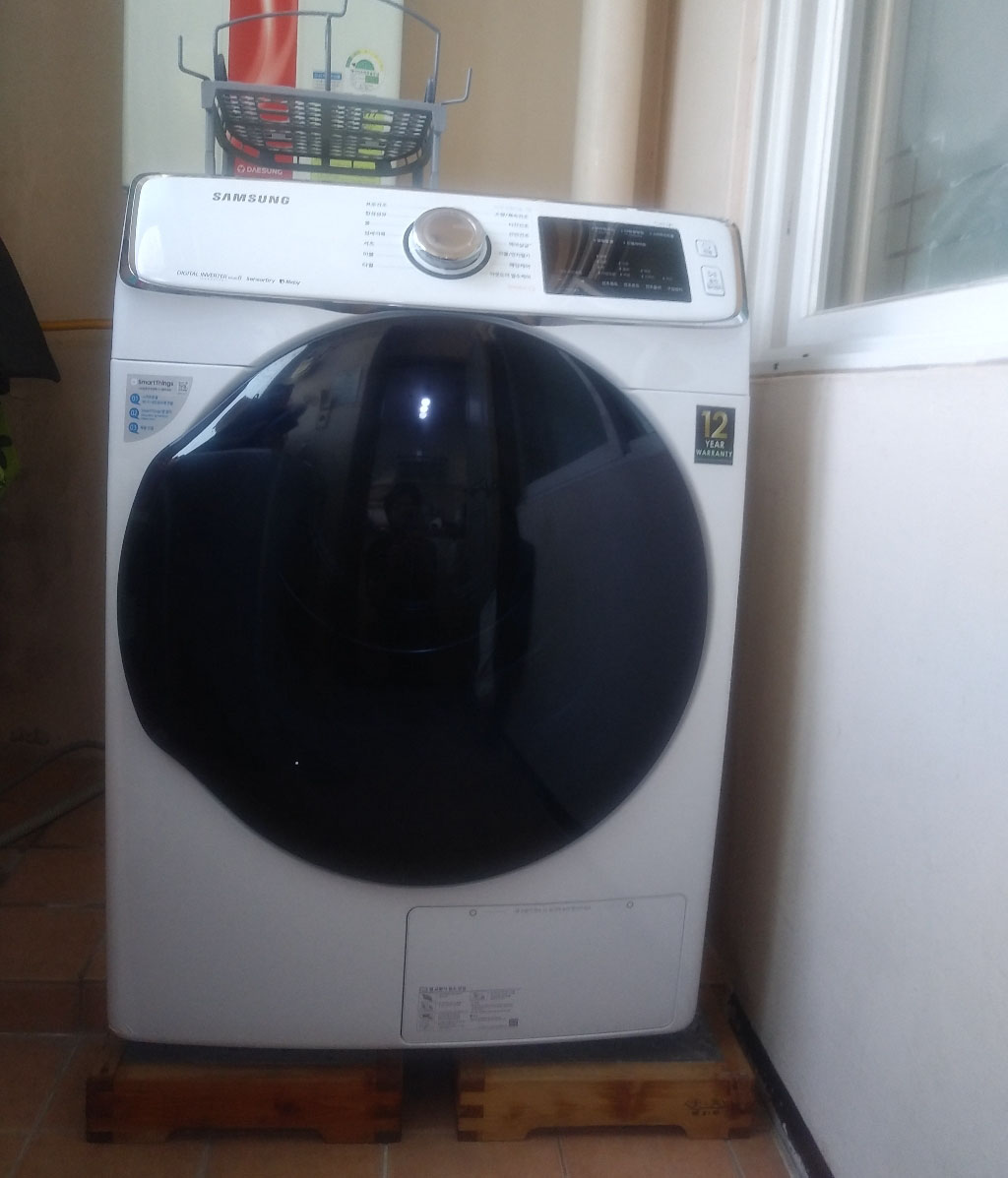세탁기위에 올리지 못해서 세탁실 바닥에 놓고 사용합니다.