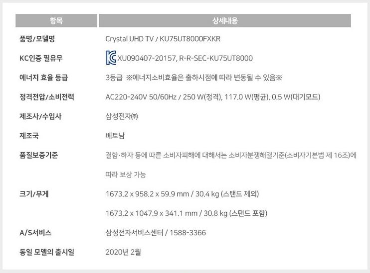 ▼ 삼성 UHD TV 75인치 KU75UT8000FXKR 상품 구매하기